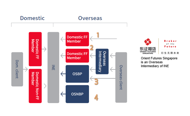 2. An INE-recognized Overseas Intermediaries may help its global customers execute and clear trades through a carrying broker, either a domestic FF Members or an Overseas Special Brokerage Participant (OSBP) of INE;